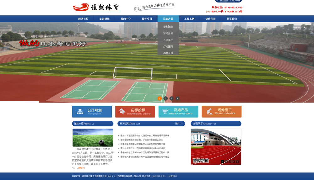 湖南謹(jǐn)然建設(shè)工程有限公司成立于2005年3月28日,是一家集設(shè)計、施工于一體的專業(yè)性公司,擁有建設(shè)部門認(rèn)定的塑膠跑道和人造草坪等體育場地建設(shè)的正規(guī)施工資質(zhì),具有施工各種大、中、小型比賽場地或訓(xùn)練活動場地的能力。公司擁有經(jīng)驗豐富、素質(zhì)優(yōu)良的團隊,可提供包括從策劃、設(shè)計、招標(biāo)投標(biāo)到場地施工、維修與翻新的各項工程服務(wù)。