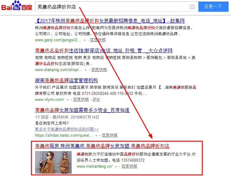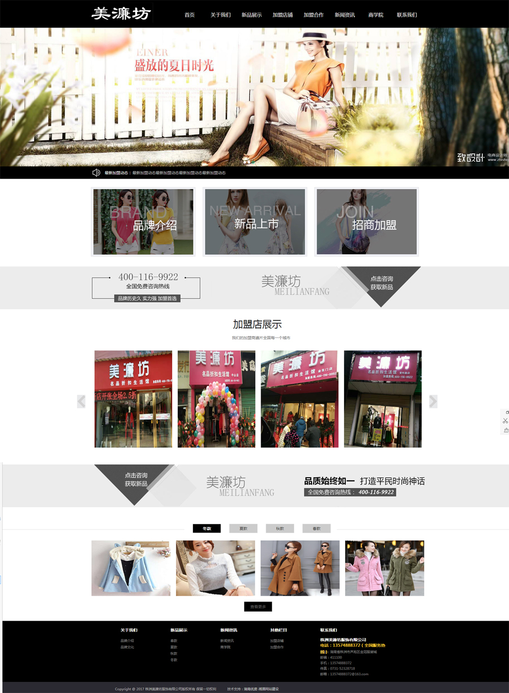 美濂坊是一個(gè)品牌折扣服裝店,此網(wǎng)站作為這家公司的品牌宣傳官方網(wǎng)站,以介紹公司形象及招商加盟為主。因?yàn)槊厘シ坏拿總€(gè)門店都有這個(gè)名字,只要用戶搜“美濂坊“或”“ 美濂坊品牌折扣店”就能找到公司相應(yīng)的介紹及加盟電話,有個(gè)這樣的網(wǎng)站也能大大提升公司的品牌知名度和信譽(yù)度。