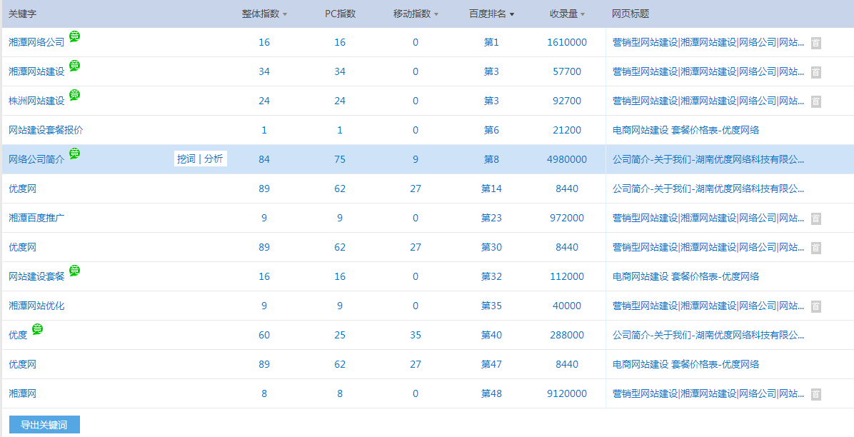 長(zhǎng)沙seo【湘潭優(yōu)度網(wǎng)絡(luò)】網(wǎng)站優(yōu)化排名情況